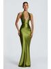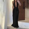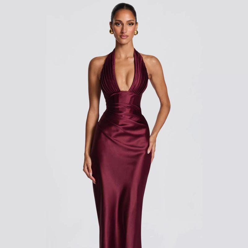 2026 Spring Festival: New Halter Deep V-Neck Pleated Off-the-Shoulder Long Dress in European and American Styles