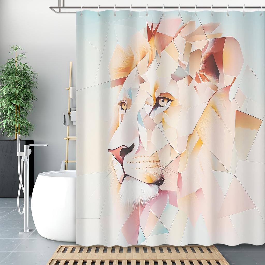 Geometric Lion Shower Curtain: Modern Artistic Design for a Stylish Bathroom