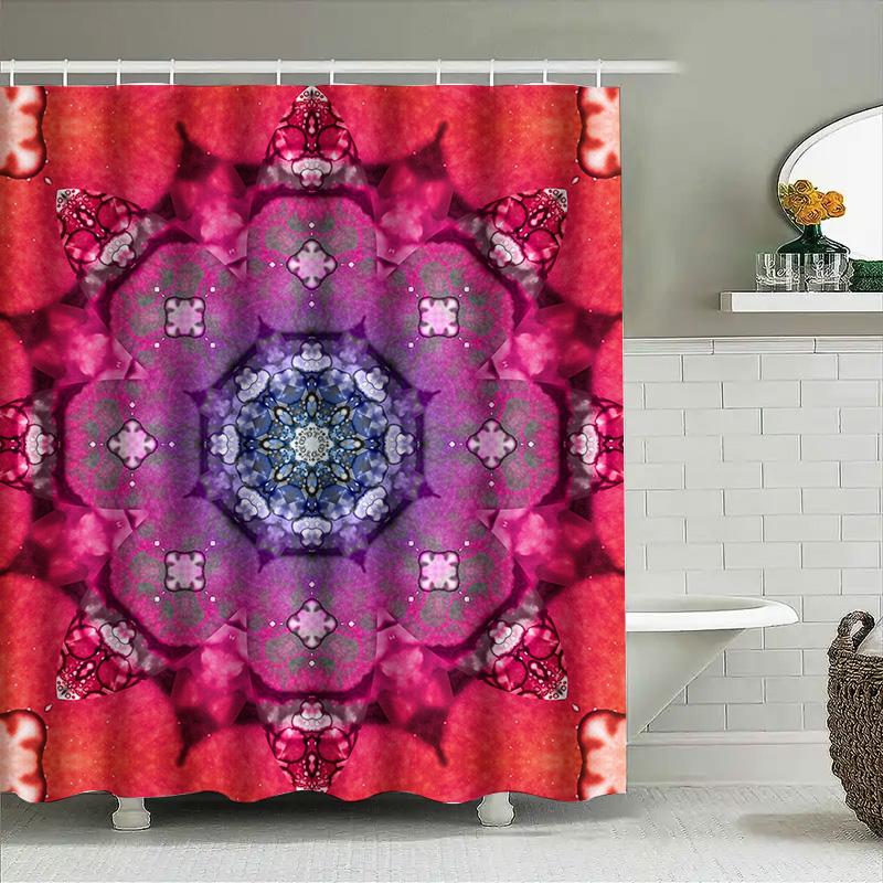 Luxury Flower Shower CurtainPink Purple Blue White Mandala Print Bathroom Decor Waterproof Custom Size Modern Home Decor