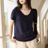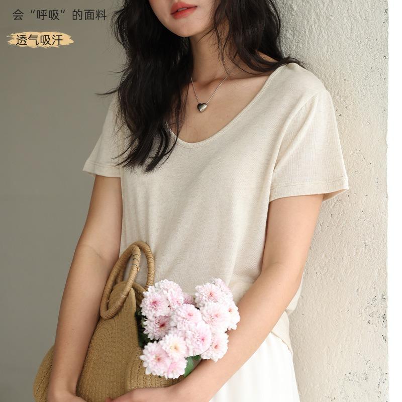 New Spring and Summer Silk Bottoming Shirt Women's Lyocell Goose Egg Neck Short Sleeve Top