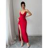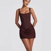 European & American Women's Sleeveless Spaghetti Strap Backless Slimming Corset Pleated Bodycon Dress