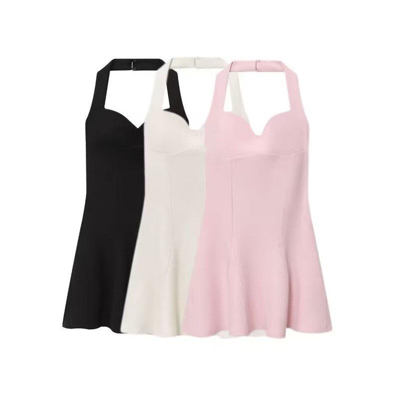 European & American Early Autumn French Strapless Halter Knit Jumpsuit: Elegant, Backless, Waist-Cinching Style