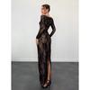 Elevate your wardrobe with this elegant dress, crafted from high-quality polyester to ensure a comfortable and flattering fit. Designed with a sophisticated asymmetrical slit, this piece adds a touch of allure to any occasion. The intricate embroidery detailing enhances its classic lace pattern, creating a striking look that seamlessly blends modern chic with timeless elegance. Perfect for evening events or special occasions, this dress is sure to make a memorable statement.