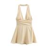 This elegant mini dress is perfect for your 2025 summer wardrobe. Crafted from a smooth polyester material, it features a stylish V-neckline and a chic halter design. The backless cut adds a touch of allure, while the tie-up detail provides a customizable fit. Ideal for warm weather, this dress combines comfort and sophistication with its lightweight fabrication, making it a versatile choice for any occasion.