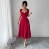 European Spring/Summer Solid Color Waist-cinching Elegant Long Dress