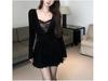 This elegant dress is crafted from high-quality polyester, designed specifically for plus-size women. Featuring exquisite French lace in a timeless black color, it comes with a short skirt that accentuates the waist for a flattering silhouette. Perfect for the autumn and winter seasons, this dress offers both comfort and style, making it a versatile addition to your wardrobe.