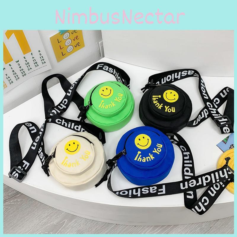 Korean Style Kids Canvas Crossbody Bag With Cartoon Smile Face For Toddlers