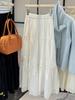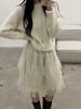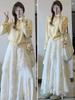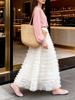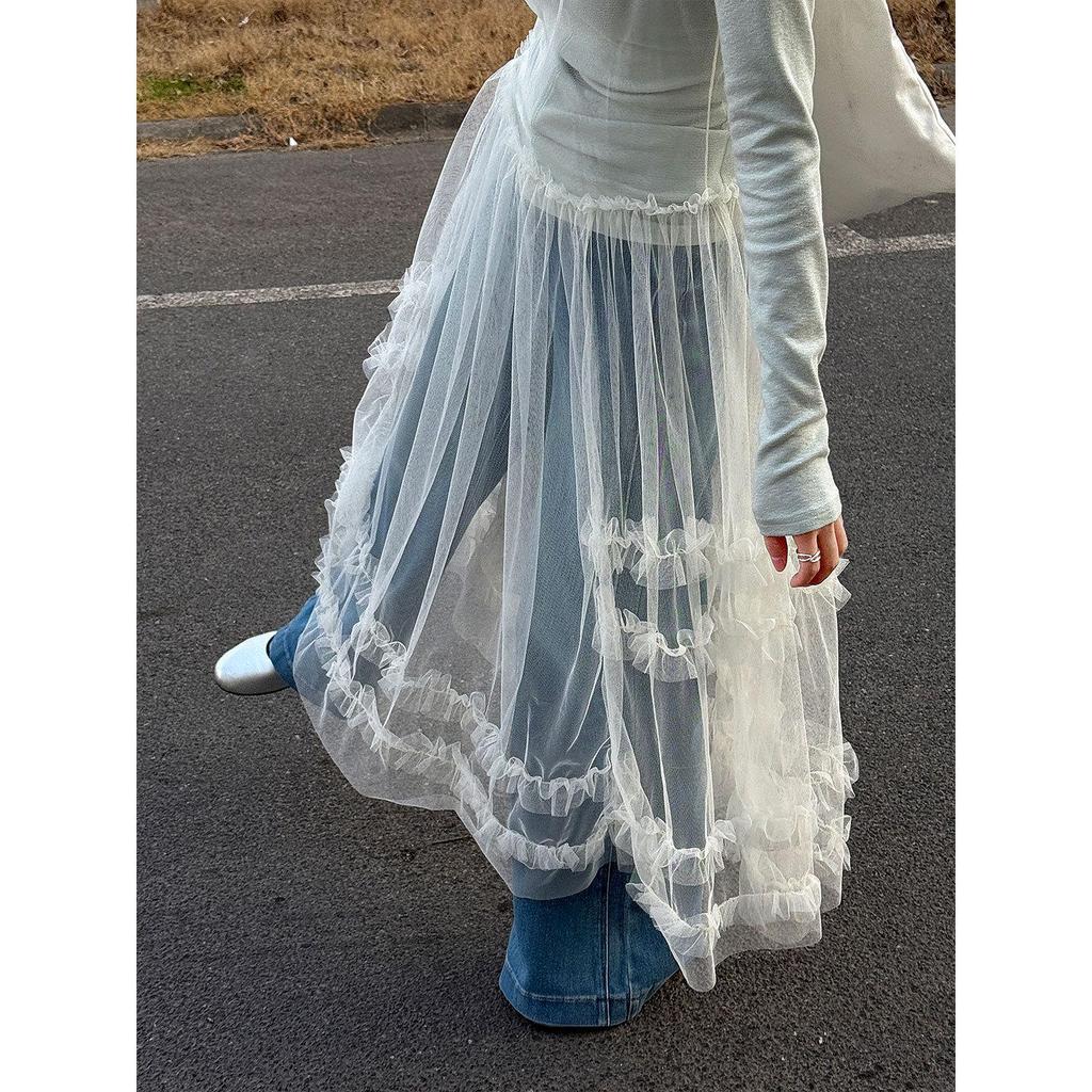 LUXI Korean Sweet Mesh See-Through Camisole Dress with Layered Blouse & Lace Long Skirt