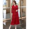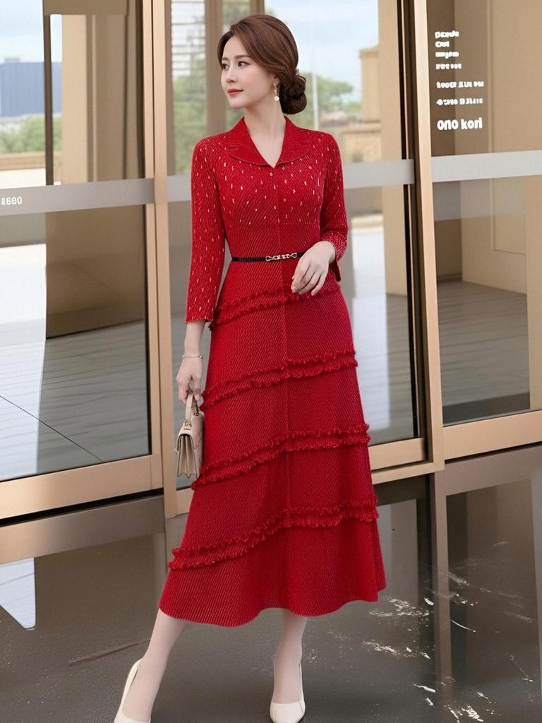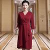 Elegant Spring High-End Miyake Pleated Green Long Dress - Waist-Cinched for Graceful Women