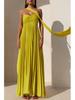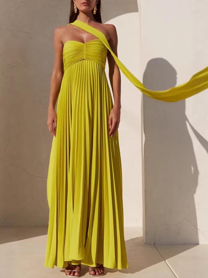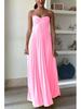 Women's Solid Color Pleated Bandeau Dress - Sleeveless, European & American Style, New Arrival