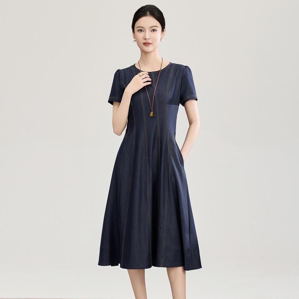 This retro waist-cinched denim dress combines style and comfort, making it perfect for spring and summer wear. Crafted from a unique blend of Tencel and cotton, the dress is both breathable and slimming, enhancing your silhouette. The short-sleeved design adds a touch of casual elegance, suitable for a variety of occasions. Made with lyocell material, it ensures durability and softness, providing a comfortable fit all day long.