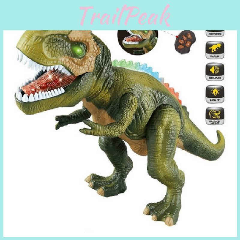 Available in two stunning colorsgreen and brownthis dynamic dinosaur is designed to captivate the imagination of both young and old alike.Constructed from high-quality plastic, our remote control T-Rex is built to withstand the rugged play of adventurous kids.With glowing eyes and realistic sounds, it makes a ferocious yet fascinating companion.The toy can walk, roar, and even light up, creating an immersive experience that transports your child back to the age of dinosaurs.