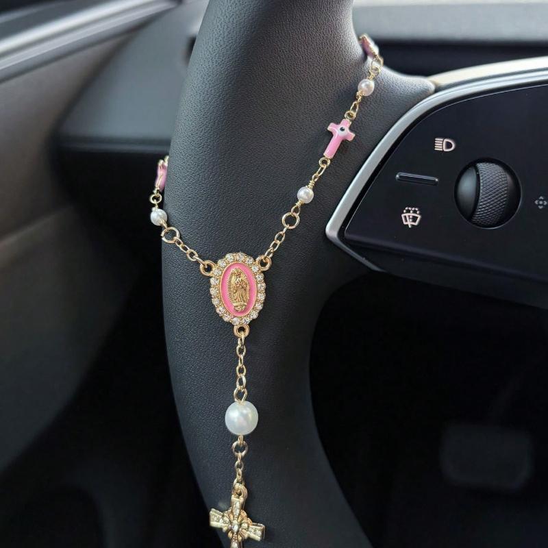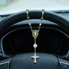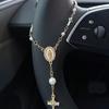 1pc Pink Pearl Cross Steering Wheel Rosary Ornament, Rosary Car Pendant Accessory, Unique Fashion Car Decor Accessory