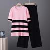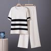 Color Block Striped Knit Top & High Waist Wide Leg Trousers Two-Piece Set