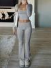 Elevate your casual wardrobe with this women's two-piece set, combining comfort and style effortlessly. The set features a solid pattern in a slim silhouette, crafted from luxurious artificial silk material that mimics the softness of milk silk. With a chic square neckline and long sleeves, this ensemble offers a sophisticated yet relaxed look, perfect for casual outings or low-key gatherings. Enjoy the perfect blend of elegance and comfort in this versatile set.