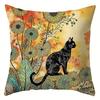 1/4pcs Black Cat & Floral Leaf Print Pillowcases Sofa cushion cover home bedroom room decoration