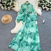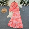 Women's French Style Tie-Waist Lantern Sleeve Chiffon Top & High-Waist Skirt Set