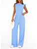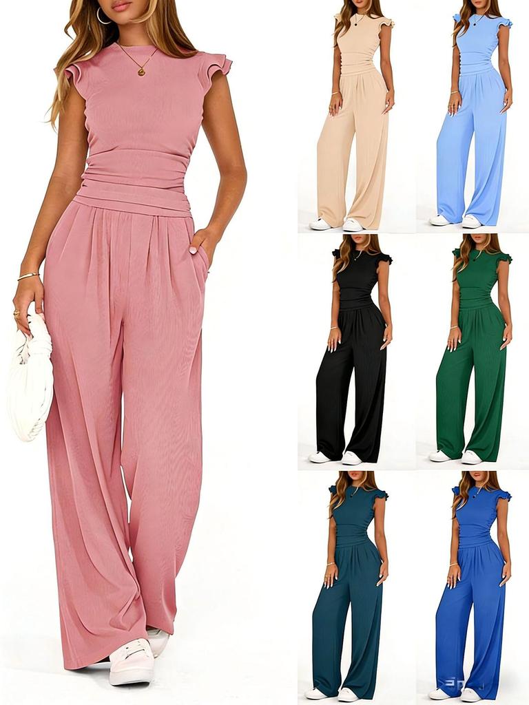 Women's 2026 Summer Solid Color Two-Piece Set with Ruffle Wide-Leg Pants