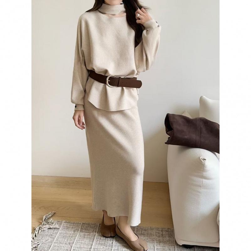 Versatile Casual Fashion Set: Autumn/Winter Slimming Knit Outfit for Date or Commute