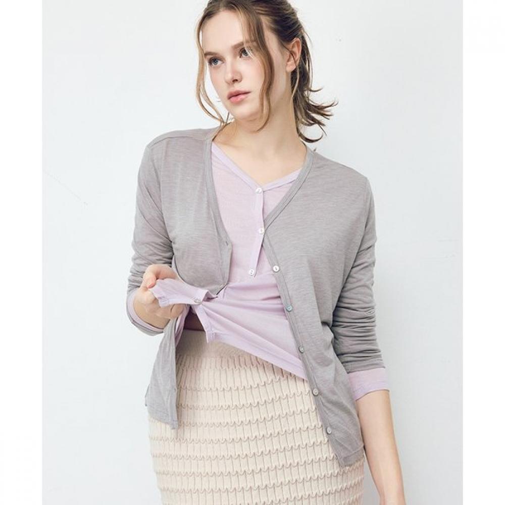 The Silky Air Daily Cardigan NGWSW3200 is offered in a variety of color options and boasts a comfortable fit, suitable for everyday use. Available in black, ivory, light blue, light gray, and mauve, it features a soft touch and stylish design.