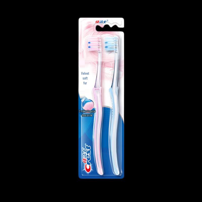 Experience gentle yet effective cleaning with the Crest Velvet Gum Care Toothbrush. Designed with ultra-soft bristles and a small brush head, it ensures thorough cleaning while protecting your gums. This convenient pack includes two toothbrushes.