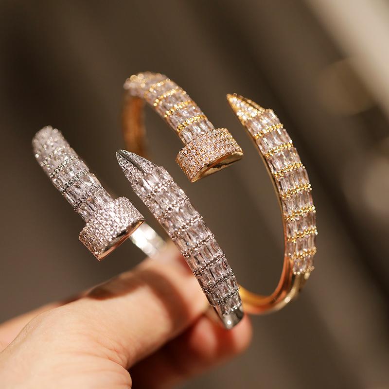 2026 New High-end Super Flash Zircon Nail Bracelet, Personalized Square Emerald Open Bracelet Jewelry