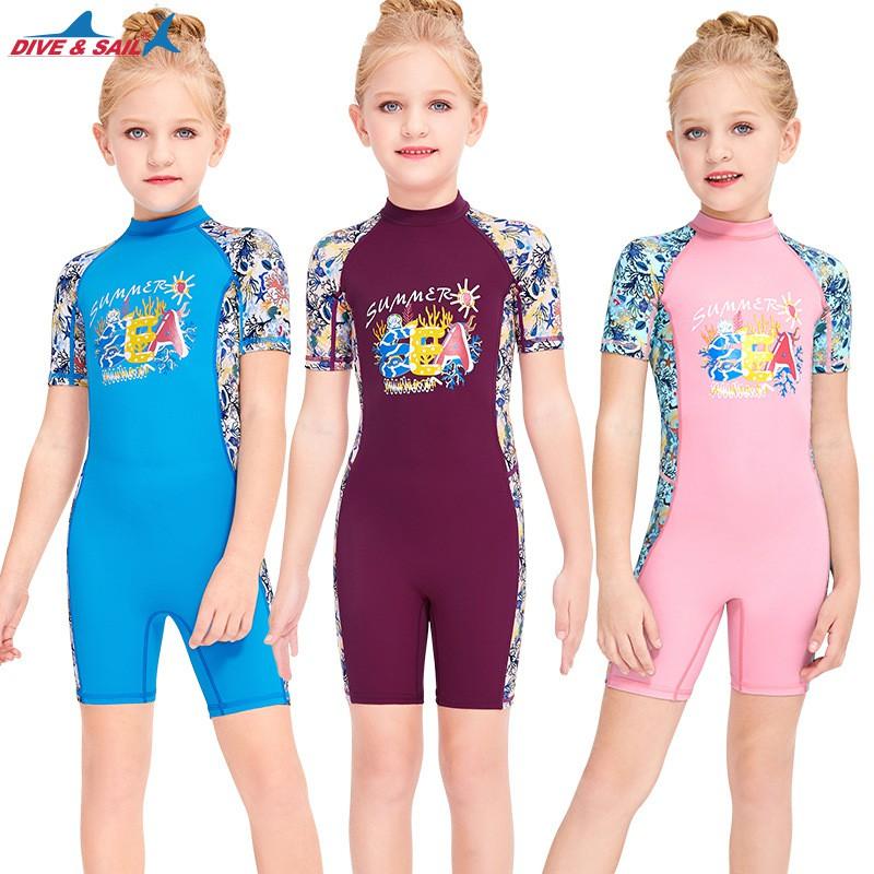 Children's Swimming Clothes Girls Sunscreen Quick-drying One-piece Short-sleeved Swimsuit Children Baby Hot