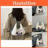 Trendy Korean Style Cute Dog Embroidered Striped Canvas Crossbody Bag For Women