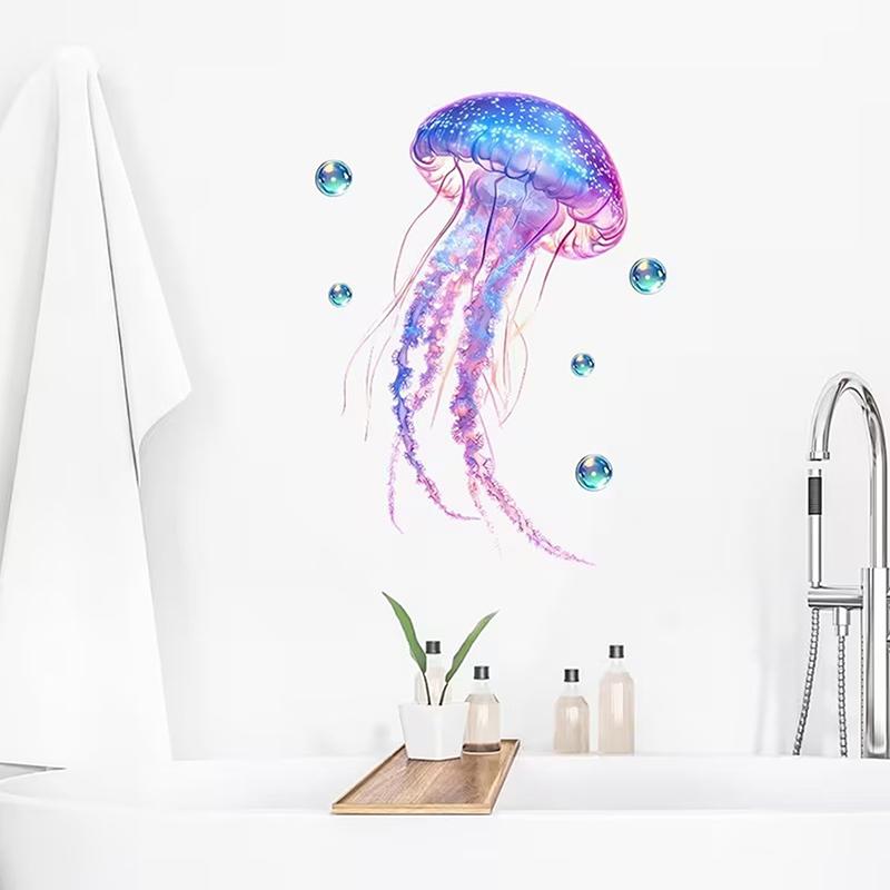 Glow-In-The-Dark Jellyfish Toilet Stickers Self-Adhesive Removable Luminous Decals Home Decor Stickers Car Stickers