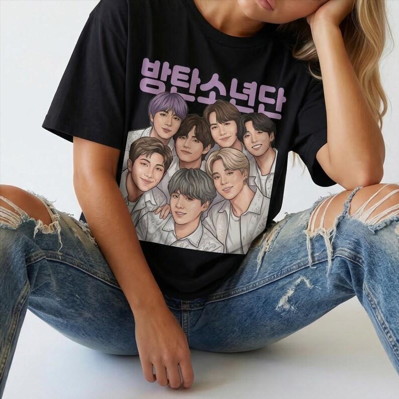 BTS World Tour Graphic T-shirt, Kpop Fan Art Tee, Bangtan Boys Shirt, Cute BTS Illustration Shirt, ARMY Gift, Korean Idol Merch