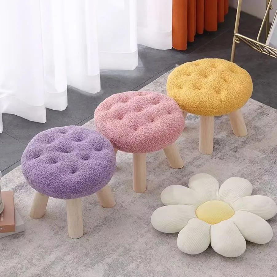 Cookie Small Stool Soft Seat Chair Girlish Heart Bedroom Solid Wood Bench Lliving Room Kids Shoe Changing Stool Home Furniture