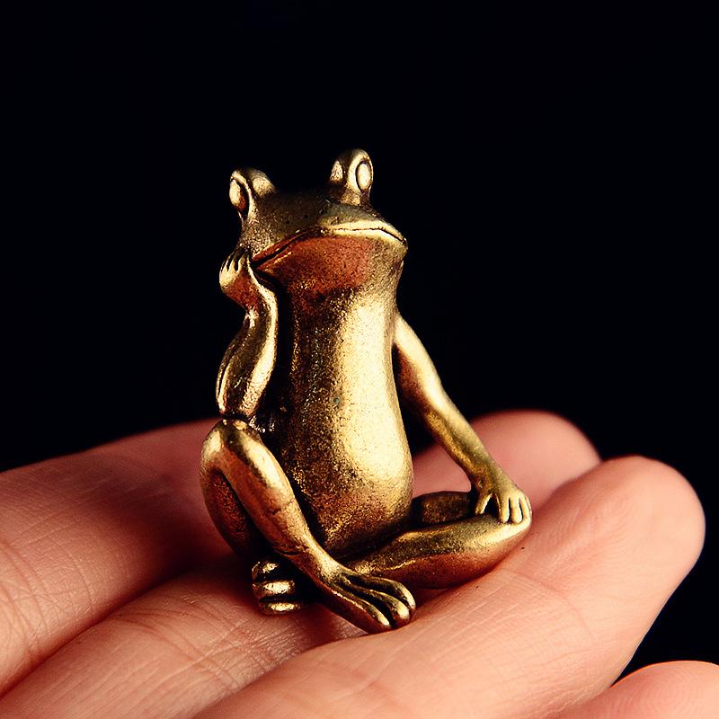 Brass Frog Statue Antique Zen Desk Decor Fortune Feng Shui Ornament Figurine for Meditation GiftStress Relief Decor