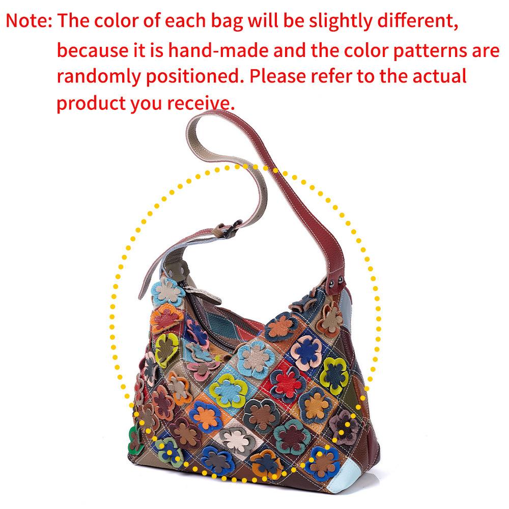 Women'S Bag Leather Shoulder Bag Handmade Flower Color Matching Diamond Women'S Casual Personalized Cowhide Bag