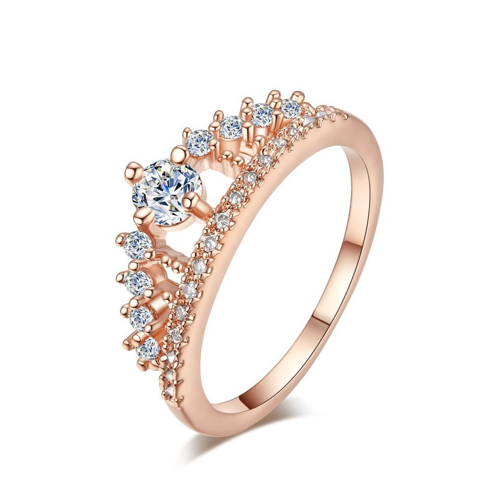 18K Gold Crown Ring with Diamond for Women Micro Paved Zircon Princess Ring