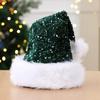 Sequin Christmas Hat Plush Solid Color Sparkle Santa Claus Hat with Long Fluffy Pompom For Adult Kids Christmas Party Decoration