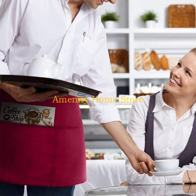 F26C Spill Resistant Lightweight Black Polyester Waist Tied Cooking Apron
