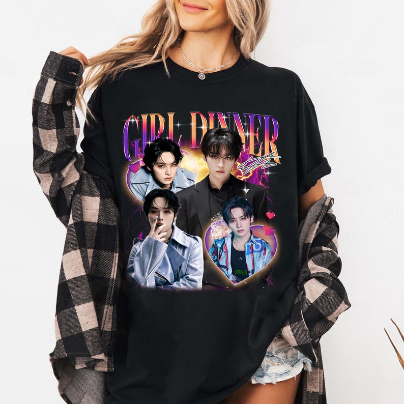 Girl Dinner Lee Know Stray Kids T-shirt, Vintage Fans Homage Tee Men Women Hip Hop Streetwear Oversized Tshirt Short Sleeve Casual Clothing