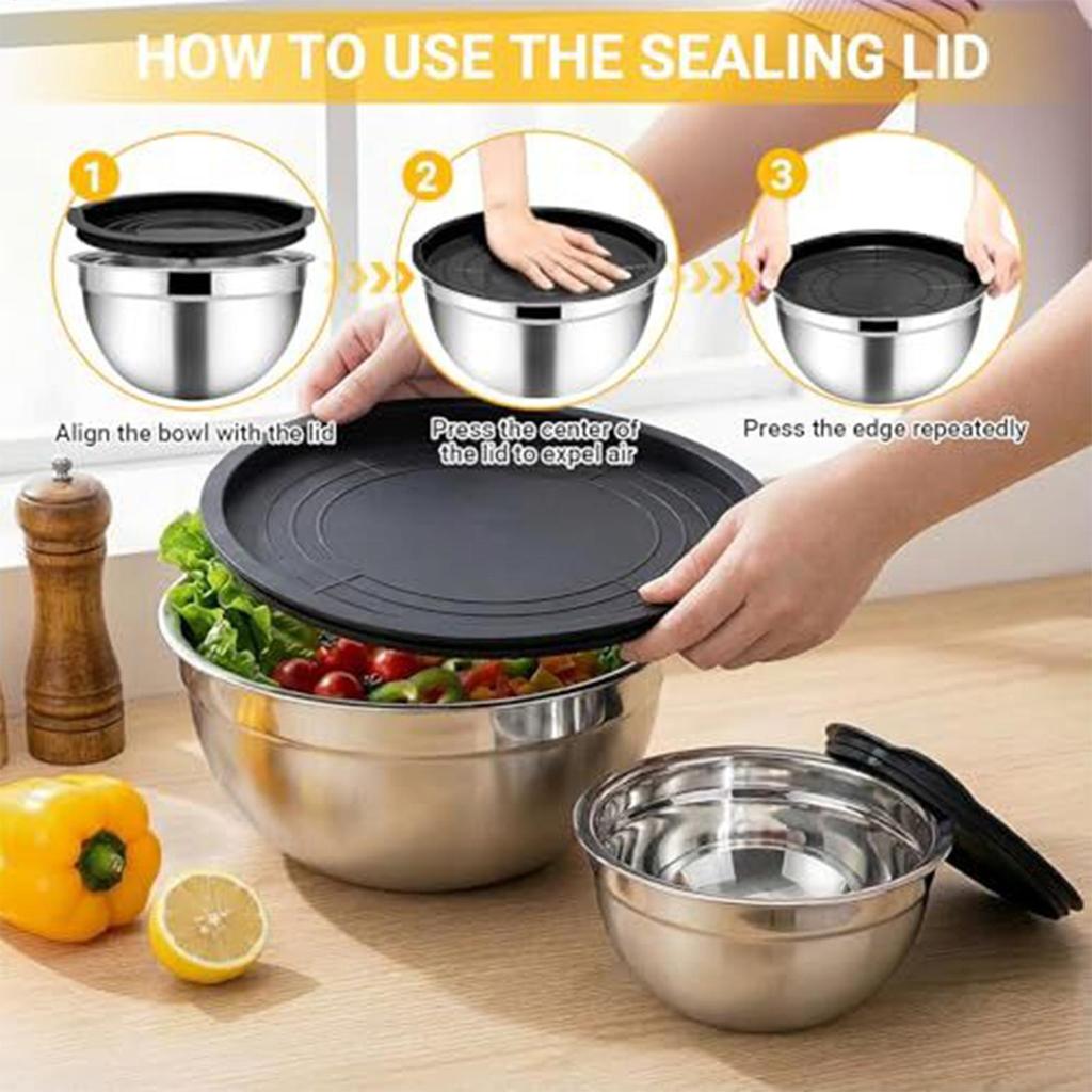 Mixing Bowls with Lids and Non Slip Stainless Steel Mixing Bowls Set for Baking Nesting Storage Bowls