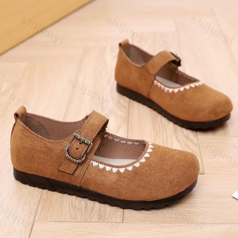 Women Flats 2026 Spring New Fashion Round Toe Buckle Strap Shallow Flat Mary Jane Shoes Comfort Soft Sole Lightweight Loafers