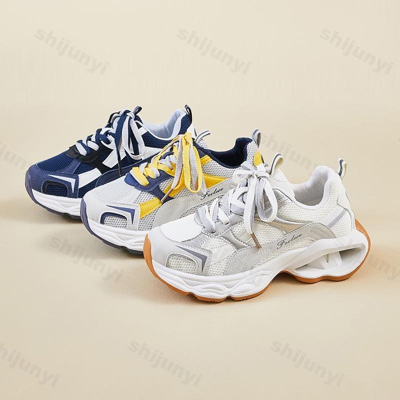 Woman Chunky Sneakers Fashion Double Lace Up Breathable Mesh Casual Sport Shoes Trendy Versatile Height Increase Platform Shoes