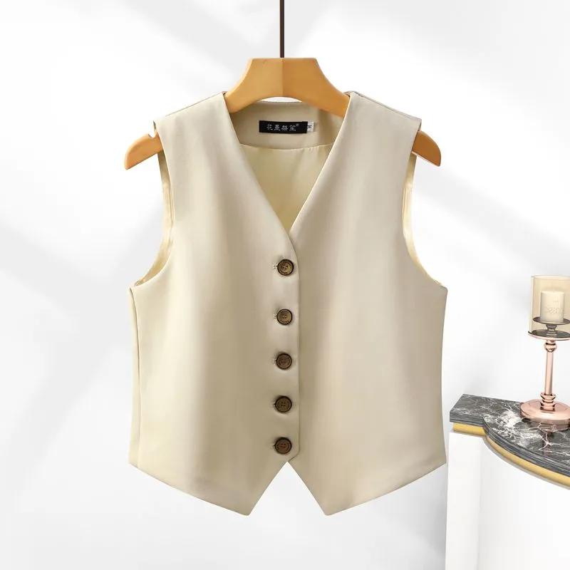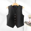 Women Autumn Casual Sleeveless Vest V Neck Button Front Cropped Waistcoat