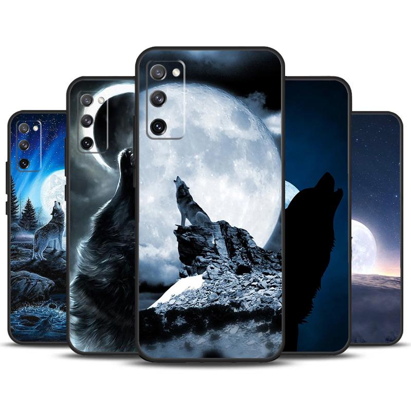 Moon Roaring Wolf Case For Samsung Galaxy S24 Ultra S21 S22 S23 Plus S20 FE S8 S9 S10 Note 10 20 Ultra Cover