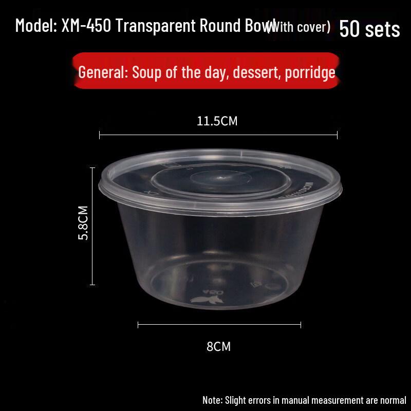 50-Pack Disposable Round Plastic Food Containers with Lids