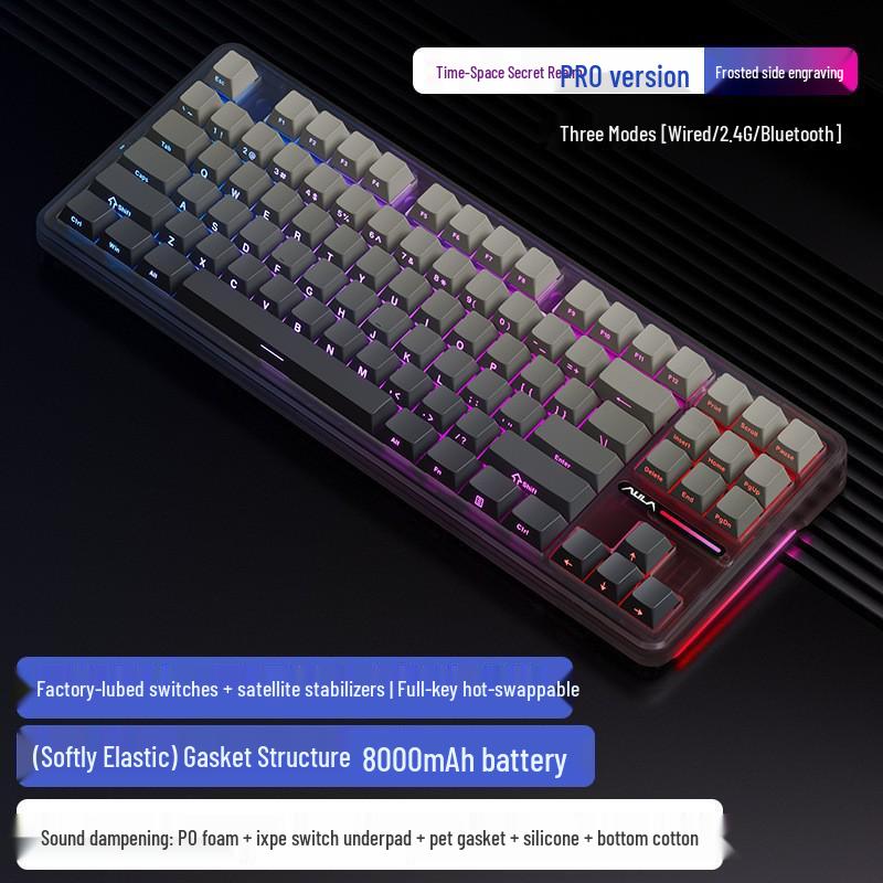 Wolfspider F87Pro Wireless Mechanical Gaming Keyboard - Customizable, Three-Mode, Bluetooth, Gasket Structure, Hot-Swappable.