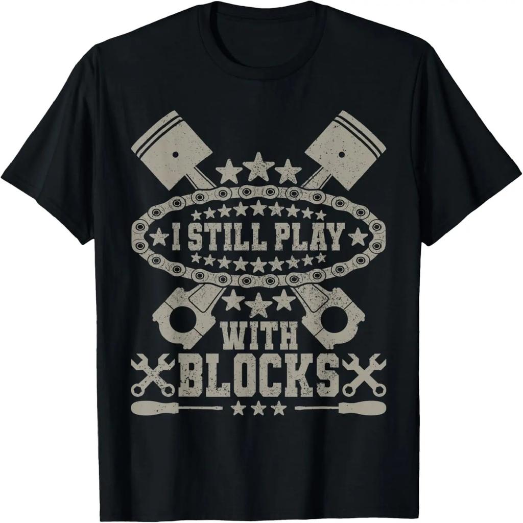 Mens I Still Play With Blocks Retro Car Guy Men Funny Mechanic T-Shirt