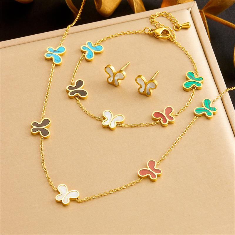 Gold Plated Colorful Enamel Butterfly Necklace Earrings Set, Stainless Steel Dainty Jewelry Set for Women Gift