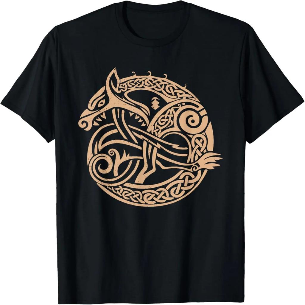 Nordic Tribal Fenrir the Wolf Viking Symbol Beige T-Shirt