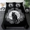 Witch Black Cat Duvet Cover Set Full Vintage Gothic Cat Sitting on Moon Bedding Set for Halloween Decor