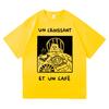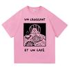 French Cafe Cat T Shirt Fashion Women Summer Funny Letter Un Croissant Et Un Cafe Tshirt High Quality Cotton Tees Shirts