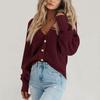 Women's Solid Knitted Long Sleeve V Neck Button Down Loose Cardigan